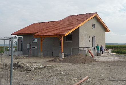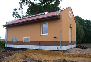 Pohled na budovu ČOV před dokončením