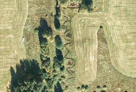 Revitalizace vodního toku – letecký snímek před