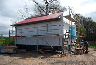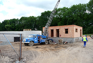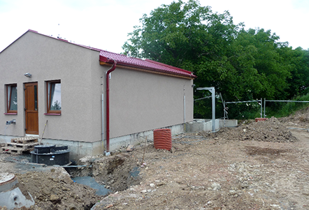 Pohled na budovu ČOV před dokončením